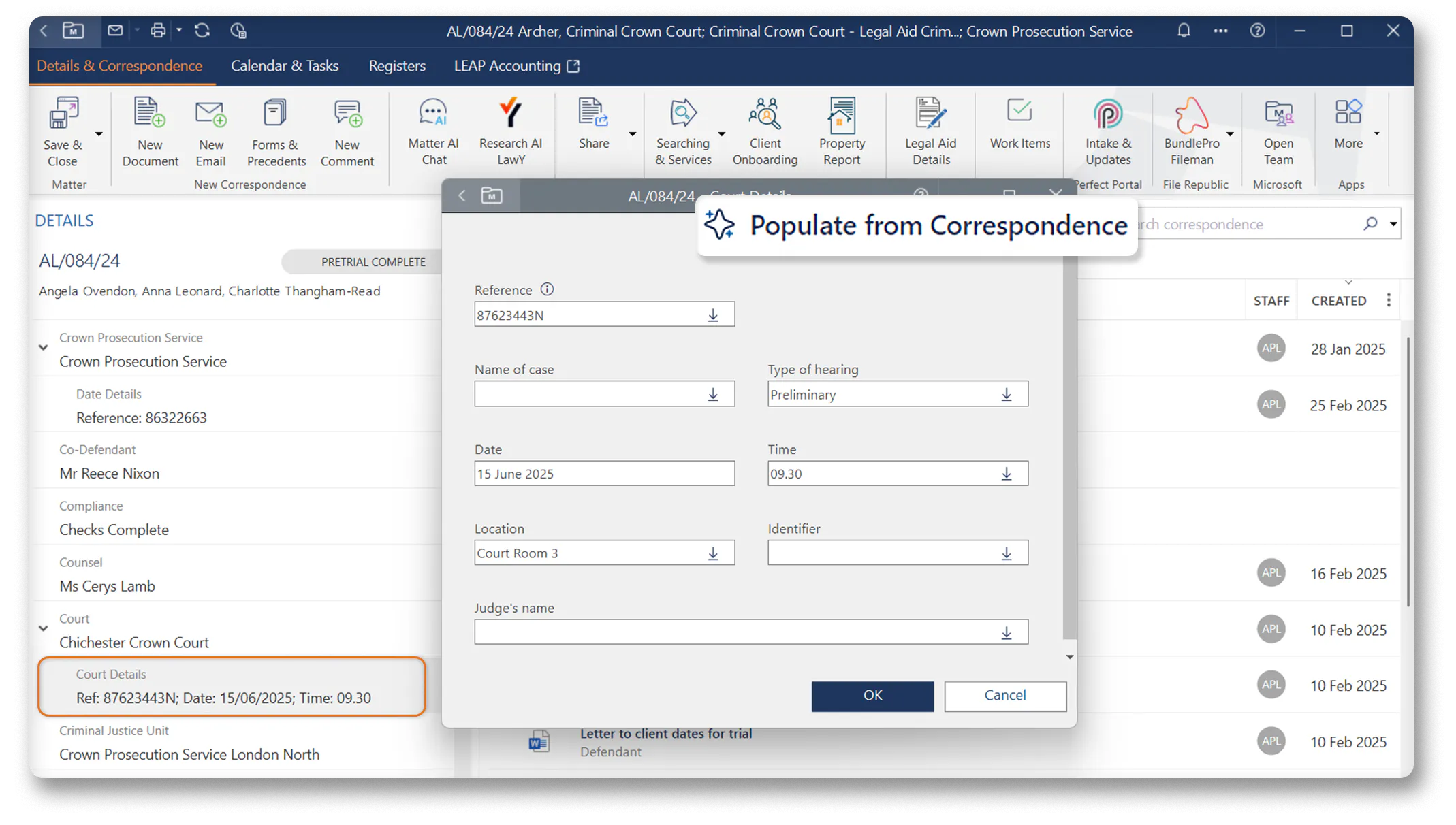 The Matter AI Layout filler helps you populate fields within tables using information from the Correspondence saved within the matter.